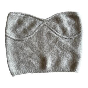 Cozy meets chic in this Zara gray knit strapless sweater top. Designed in a bustier silhouette with contour seaming, this tube-style piece offers both comfort and style. Perfect layered under a jacket or worn solo for a minimalist look, it’s versatile enough for casual or elevated outfits. Size M with stretch knit construction—see photos for measurements.