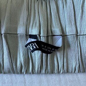 ZARA Sage Green Satin-Effect Crinkle Crop Top Size S 🩵