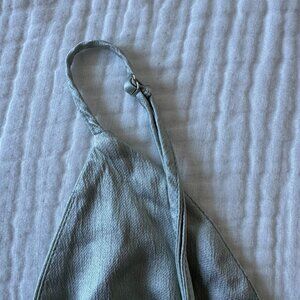 Chic bralette-style crop top from ZARA in a beautiful sage green satin-effect fabric with a subtle crinkle texture.