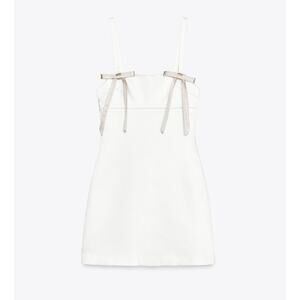 Timeless, elegant, and irresistibly feminine — this ZARA Oyster Satin Bow Mini Dress captures modern romance in every detail. Crafted in a luminous satin finish with delicate ribbon bows on thin straps, this chic silhouette evokes understated glamour perfect for soirées, date nights, and celebrations.