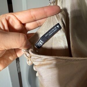 ZARA Satin Cowl Neck Camisole | Champagne Gold | Size S | Button Back