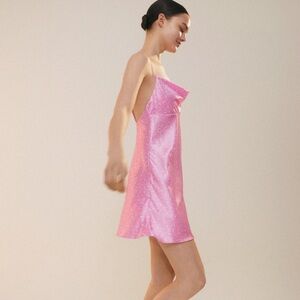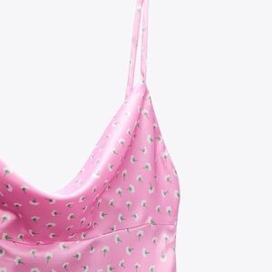 Flowy neckline and adjustable thin straps. Back hidden in-seam zip closure. 96% polyester 4% elastane