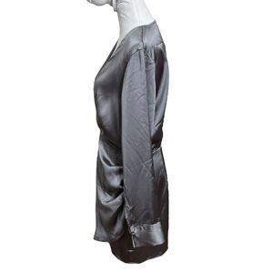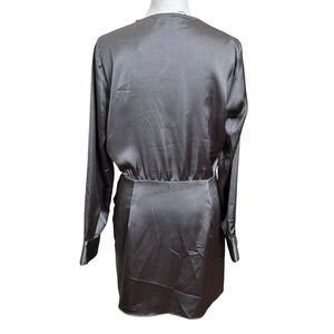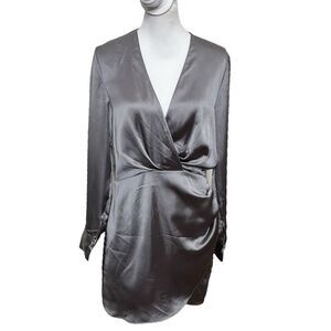 ZARA Satin Faux Wrap Mini Dress Charcoal Grey A-Line Women’s Size Large