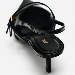 ZARA Black Slingback kitten heels with faux patent leather finish. NWT
