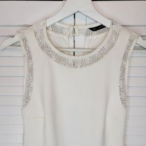 ZARA Sheath Off White Mini Dress Lace Trimmed Sleeveless Women's Small Old Money