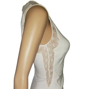 ZARA TRAFALUC Fitted Mini Ivory Sheath Dress Lace Inserts Sleeveless Round Neck