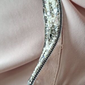 ZARA Sheer Blush Embellished Mock Neck Blouse