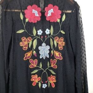 ZARA Sheer Plumetis Blouse with Embroidery – Black Top, Size S
