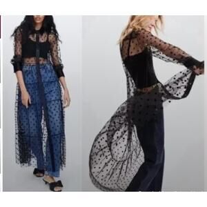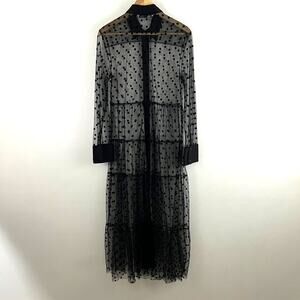 ZARA Sheer Polka Dot Tulle Button Down Short Dress in Black Size S Small