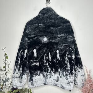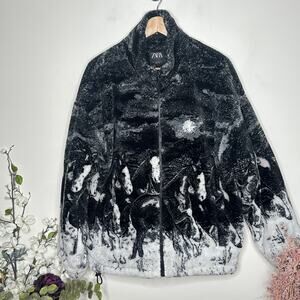 ZARA Sherpa Horse Print Full Zip Jacket Blogger Favorite Sz Large