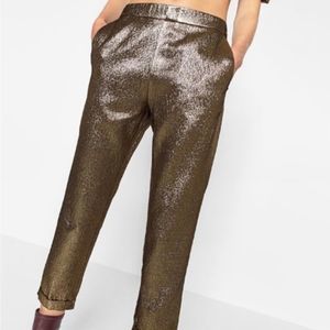Zara Shiny Gold/Silver Pants High Waist Dress Pants