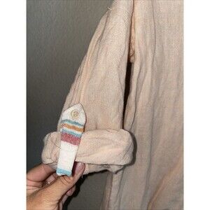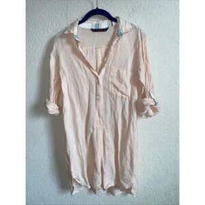 Super cute Zara basic collection, linen shirt dress long sleeve with a roll tab button up sleeve and a rounded bottom with a pocket on the front. Super cute peach light color. lightweight .