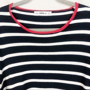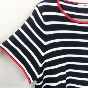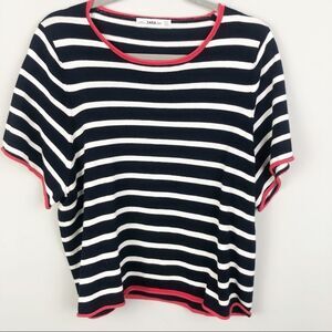 ZARA | Short Sleeve Sweater Top Navy Red White M