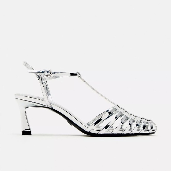 #zara #zarashoes #cagesandals #silverheels #midheel #eveningshoes #partyheels #metallicshoes #chicstyle #poshmarkfashion
