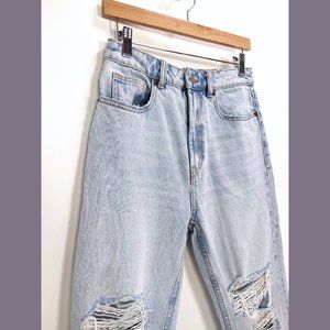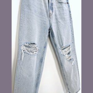 ZARA Size 6 Womens Distressed Ripped High Rise Mom Jeans in Light Blue