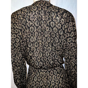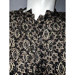 ZARA Size XS Black Brown Gold Metallic Balloon Sleeve Button Front Shirt Dress