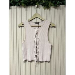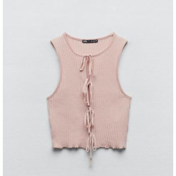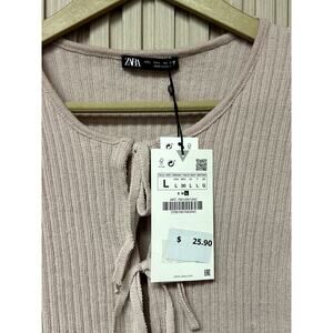 ZARA Sleeveless Ribbed Tie Front Top Sz L Women's Top
