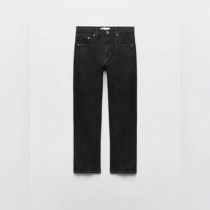 ZARA Slim Straight Cropped in Washed Black Denim Jeans 38 6 NWT
