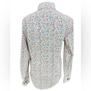 ZARA Slim fit floral button front shirt size Small. 100% cotton, button front and cuffs, shirttail bottom hem. Extra buttons on inside tags. Approximate measurements are pit to pit 19”, length from shoulder approximately 28”.