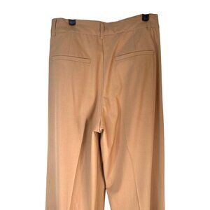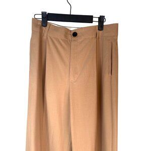 pants, trousers, slacks, camel, tan, beige, caramel, solid, plain, woven fabric, polyester blend, smooth texture, wide leg, tailored, pleated front, relaxed fit, minimalist, modern, office wear, business casual, professional attire, workwear, elegant evening, chic, stylish, versatile, timeless, contemporary, refined, sophisticated