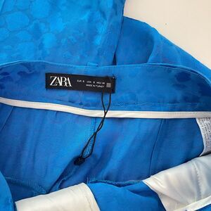 ZARA Blue Satin Wide Leg Animal Print Jacquard Pants Bold Statement Classic Career Office Small
