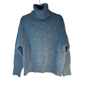 ZARA Smokey Blue Medium Turtleneck Sweater Acrylic Wool Alpaca Blend Soft Cozy