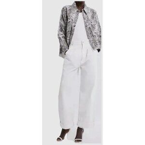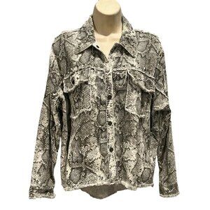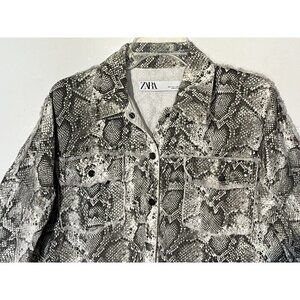 ZARA Snake Print Raw Hem Studded Rhinestones Denim Jean Oversize Jacket