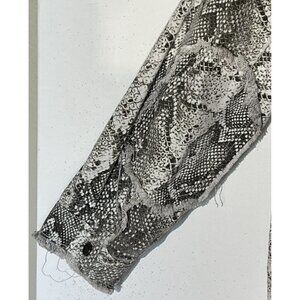 ZARA Snake Print Raw Hem Studded Rhinestones Denim Jean Oversize Jacket