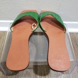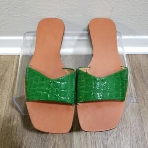 Zara Snake Skin Patent Leather Flip flop/sandals, square toe open V vamp in good condition