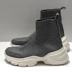 ZARA Sock Knit Sneakers Women’s Sz 8 Gray Stretch Comfy 2.5” Heel Chunky Booties
