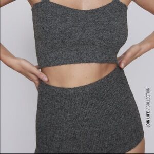Knit Cropped top with straps. High-waisted Shorts.