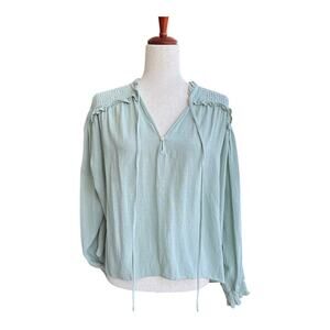 ZARA Soft Textured Boho Blouse Balloon Sleeve Top Airy Pistachio Mint Green XL