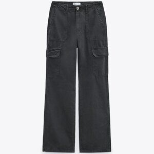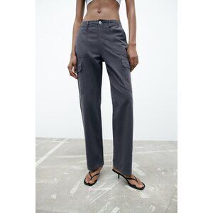 ZARA Straight Leg Cargo Pants Blue Women's Size 4 Small Blue Grey High Waisted S