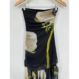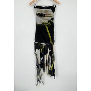 ZARA Strapless Midi Dress Floral Print Tulle Ruched Y2k Style Maxi Blogger Fav