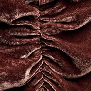 Velvet midi dress. Straight neckline and adjustable spaghetti straps. Side ruching detail, open back interior lining. Invisible back zip closure.
