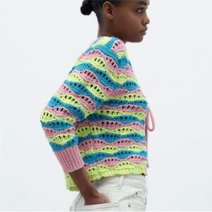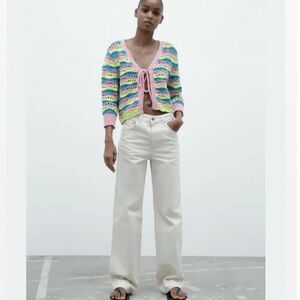 ZARA Striped Knit Cardigan Multicoloured Size S