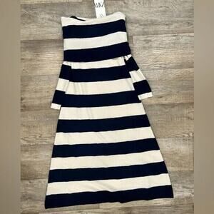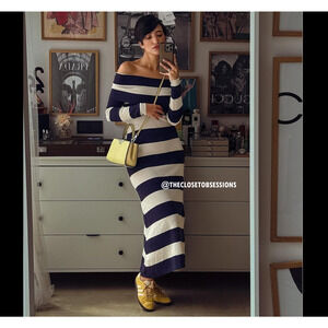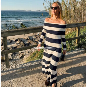 ZARA Striped Knit Off Shoulder Midi Dress NWT Size M