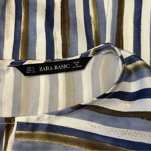 Stylish Zara mixed stripe print blouse in green/blue/white/brown