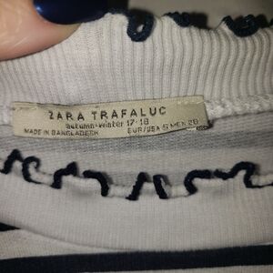🧡ZARA Striped Ruffle Collar Raw Hem Top