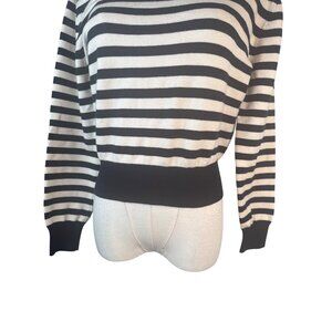 ZARA Striped Small Navy Blue & Cream Knit Sweater Viscose Blend