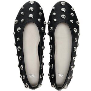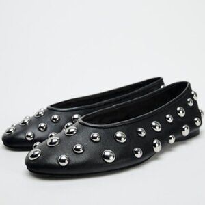 Flat leather ballerina shoes. Metallic stud detail on the upper. Round toe. Worn once.