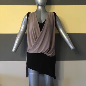 ZARA stylish, asymmetrical top/dress. Size: Small. Color: gray/black color block. Fabric: viscose - 96%, elastane - 4%. Approximate length - 32” (measured in the back from shoulder to bottom). Strategically designed to cover any imperfections. Very versatile and can be worn as a dress or top, goes with jeans, leggings, high boots, heels, or as a layered piece!