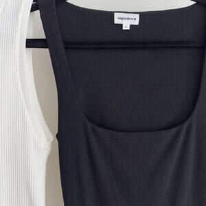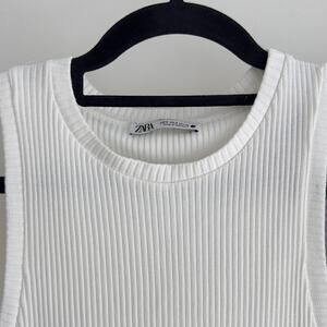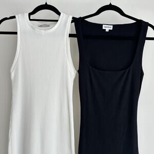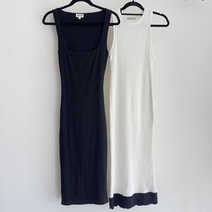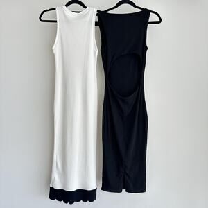Includes two dresses: one ZARA white ribbed knit sleeveless midi tank dress (size Small) and one Superdown black ribbed knit sleeveless midi dress (size Small)