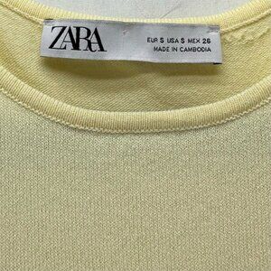 ZARA Sweater Womens Sz S Ribbed Tank Round Neck Sleeveless Viscose Nylon Yellow