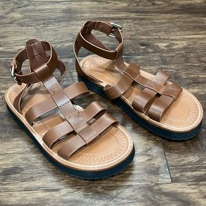 ZARA TAN LEATHER FISHERMAN SANDALS SZ. 7