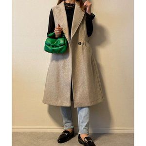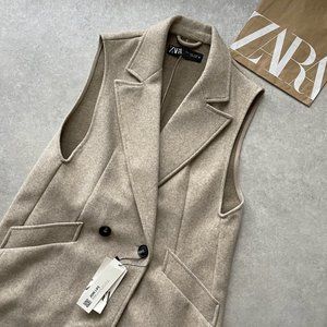 ZARA TAN LONG SLEEVELESS VEST WAISTCOAT COAT $149