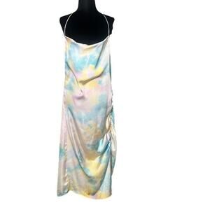 ZARA TIE DYE SLIP MIDI RUCHED SIDE DRESS L