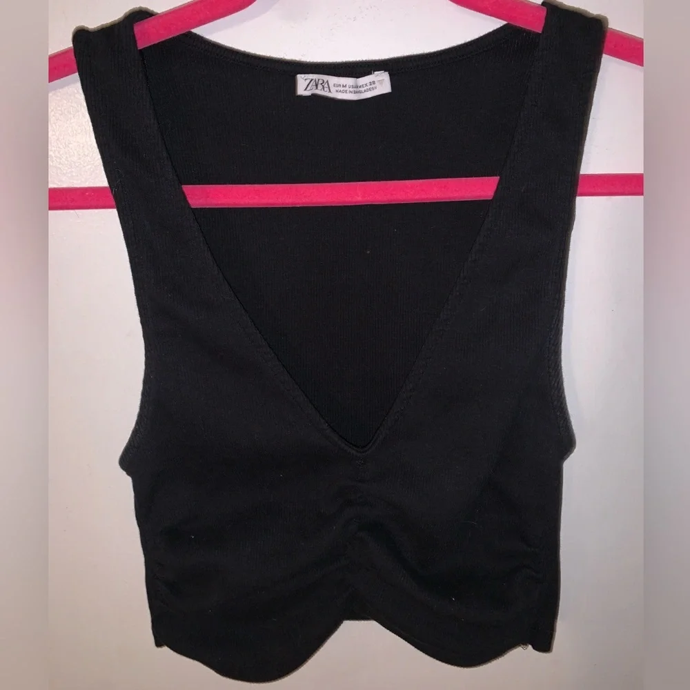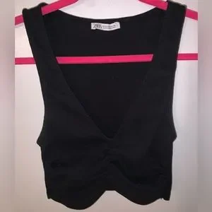 ZARA crop top stitching in the middle is scrunched Great condition No issues Rarely used, so color is NOT faded