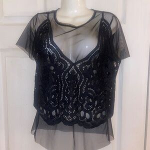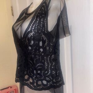Zara blouse size L Black Veil and lace fabric 44 cm from armpit to armpit 60 cm long