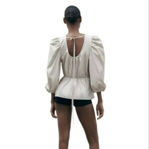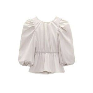ZARA TOP WITH PUFF SLEEVES Grey / Beige m | 3136/545